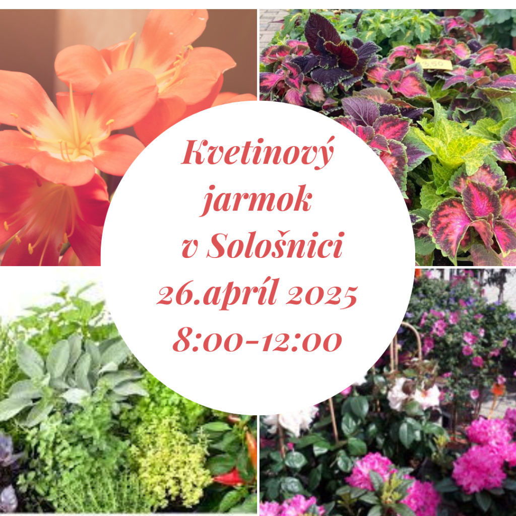Srdečne Vás pozývame na Kvetinový jarmok, ktorý sa uskutoční 26.apríla 2025 od 8:00 do 12:00 hod na námestí pri kostole.